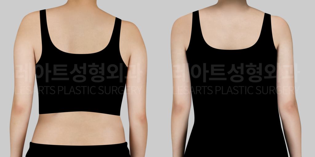 Lesarts Plastic Surgery – arm liposuction (Dr. Yongseung Seo) before and after comparison – back view