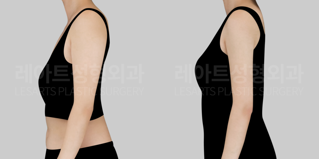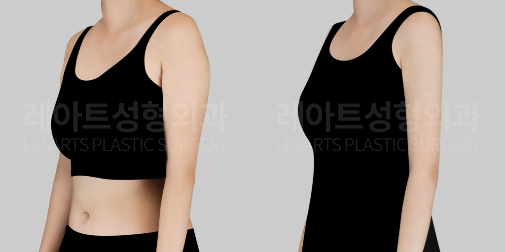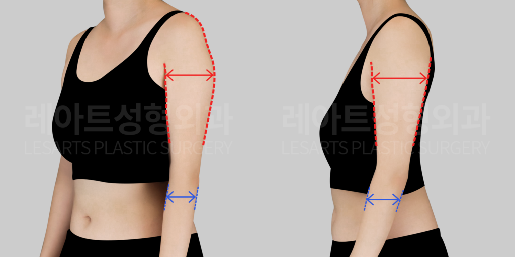 Lesarts Plastic Surgery – arm liposuction (Dr. Yongseung Seo) before and after comparison – side view