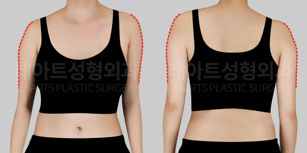 Lesarts Plastic Surgery – arm liposuction (Dr. Yongseung Seo) before and after comparison – front view