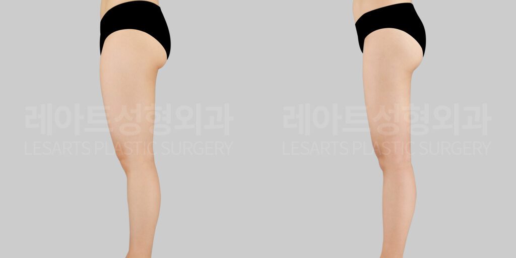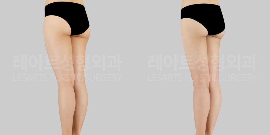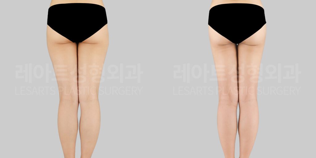 Before-and-after comparison of thigh liposuction – Dr. Pyongrim Choi, Lesarts Plastic Surgery