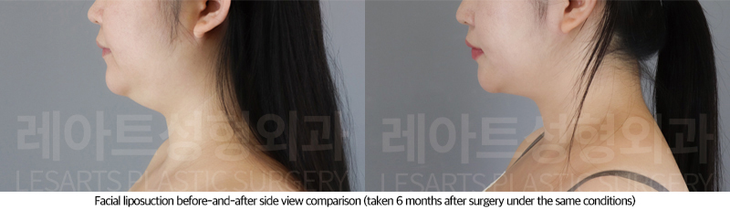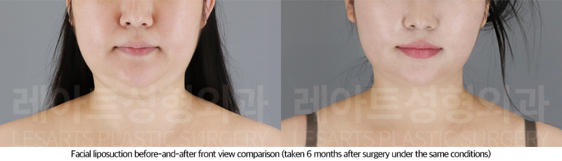 Facial liposuction in Gangnam – 6 months before & after comparison for double chin and cheek fat reduction | Lesarts Plastic Surgery